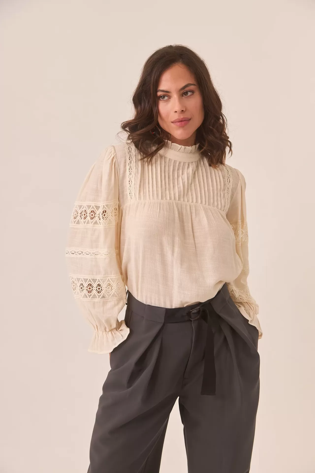 Home Nekane Blusa Cetus Blusa Cetus Tamanho S M L XL 89,00 € Desconto de %. Comprar Contactar Adicionar à wishlist Ref. NEKANE.FF.CETUS Blusa Nekane com detalhes de rendas, gola alta e detalhe plissado no busto, fecho por botões nas costas e mangas compridas balão com punhos franzidos. Composição: 82% Viscose 18% Poliéster Partilhar