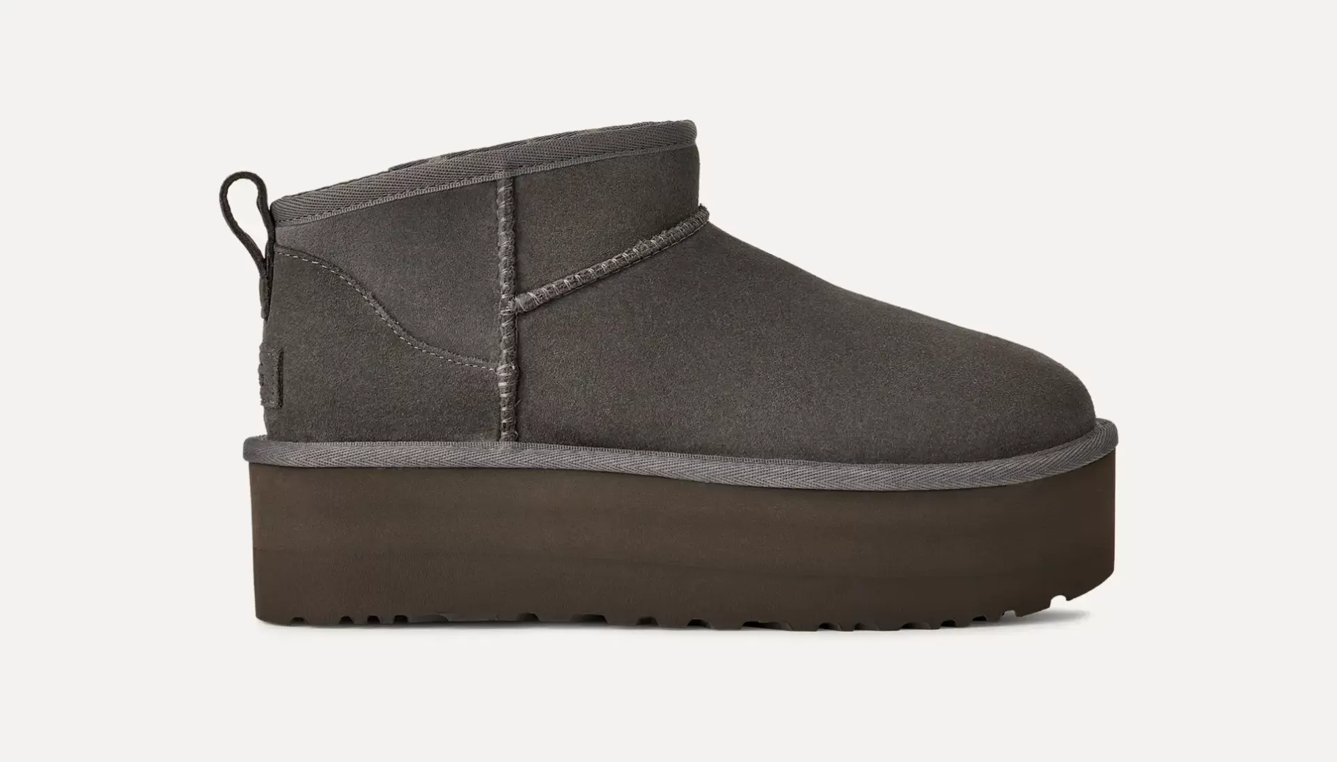 Bota UGG classic ultra mini com plataforma, feita de camurça rica e forrada internamente com nossa mistura UGGplush™ para uma maciez exclusiva.