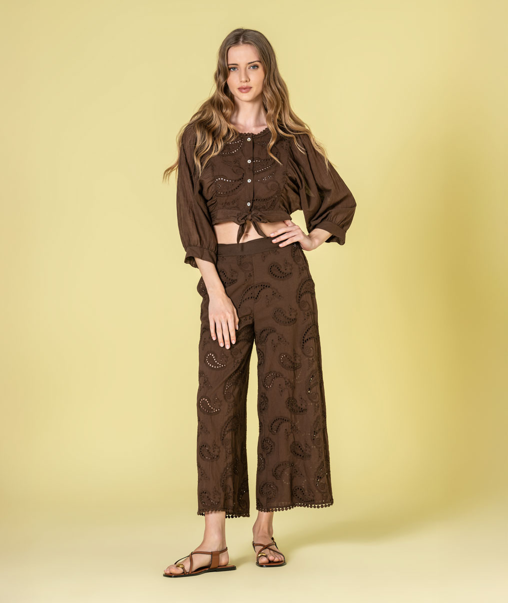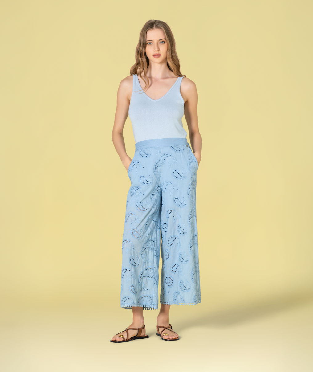 Home Rüga Calça Bernardina Calça Bernardina Cor Azul Castanho Crú Tamanho S M L 80,50 € Desconto de %. Comprar Contactar Adicionar à wishlist Ref. RÜGA.6513 Calça Rüga de modelo solto e curto em tecido com bordado inglês, cintura alta com elástico atrás. Composição: 100% Algodão Partilhar