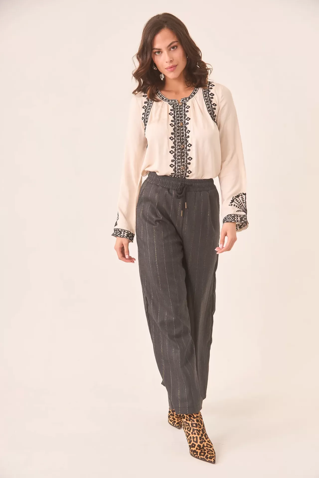 Home Nekane Calça Kyani -20% Calça Kyani Tamanho S M L XL 71,20 € 89,00 € Desconto de 20%. Pink Week Desconto imediato de 17,80 € (20%) neste produto. Válido de 22 de Novembro de 2025 às 21:00 até 29 de Novembro de 2025 às 00:00. Comprar Contactar Adicionar à wishlist Ref. NEKANE.NI.KYANI Calça Nekane estilo pantalona com padrão de riscas em dourado e cintura elástica com cordão. Composição: 70% Poliéster 17% Viscose 10% Lã 3% Elastano Partilhar