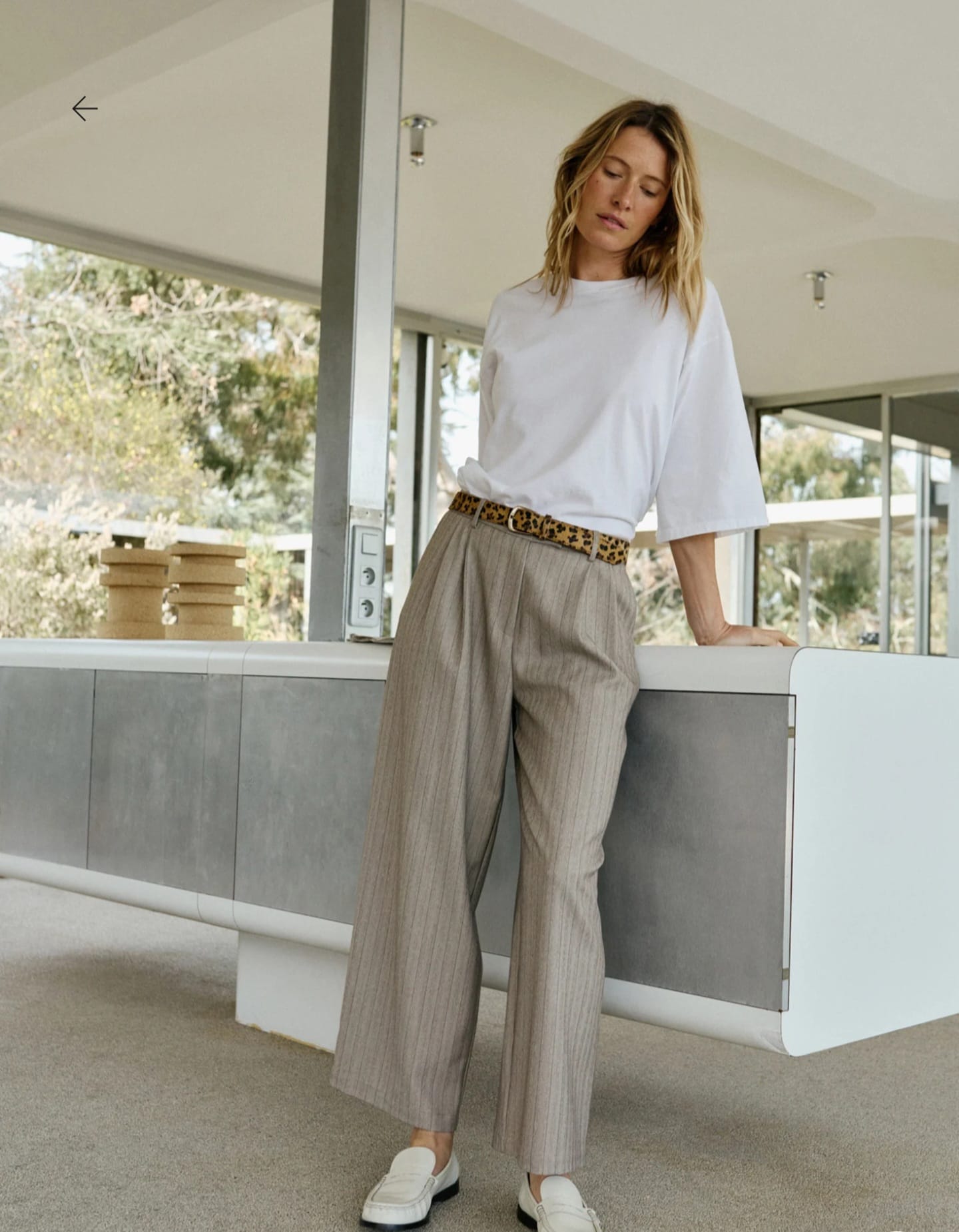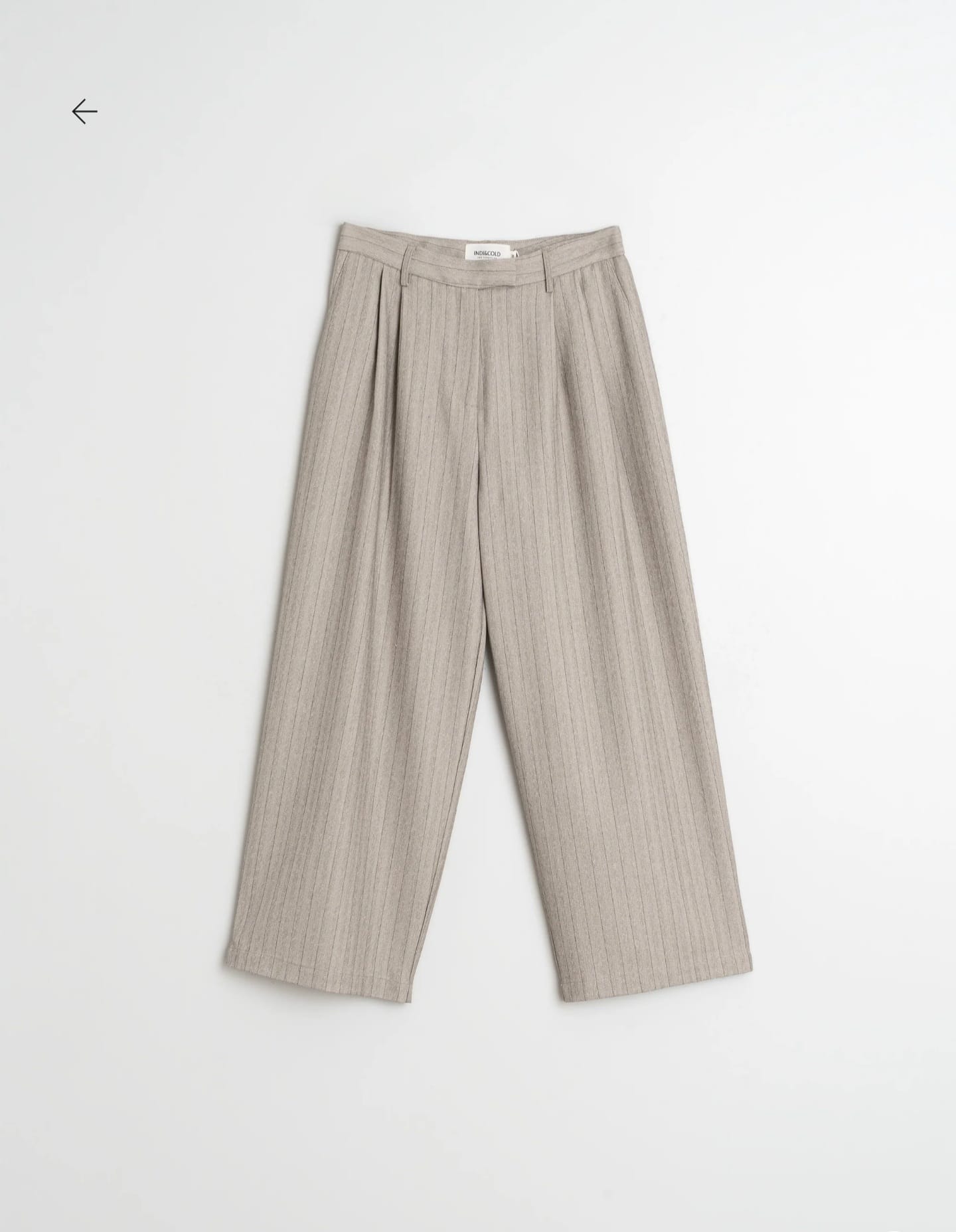 Calça Indi & Cold de modelo levemente solto, de cós médio com pinças, zíper e fecho de botão oculto, bolsos frontais com corte francês e bolsos embutidos nas costas.