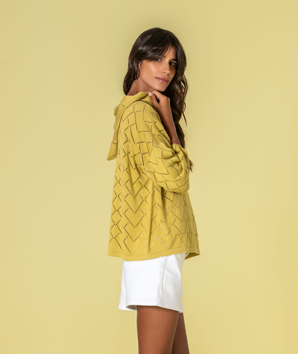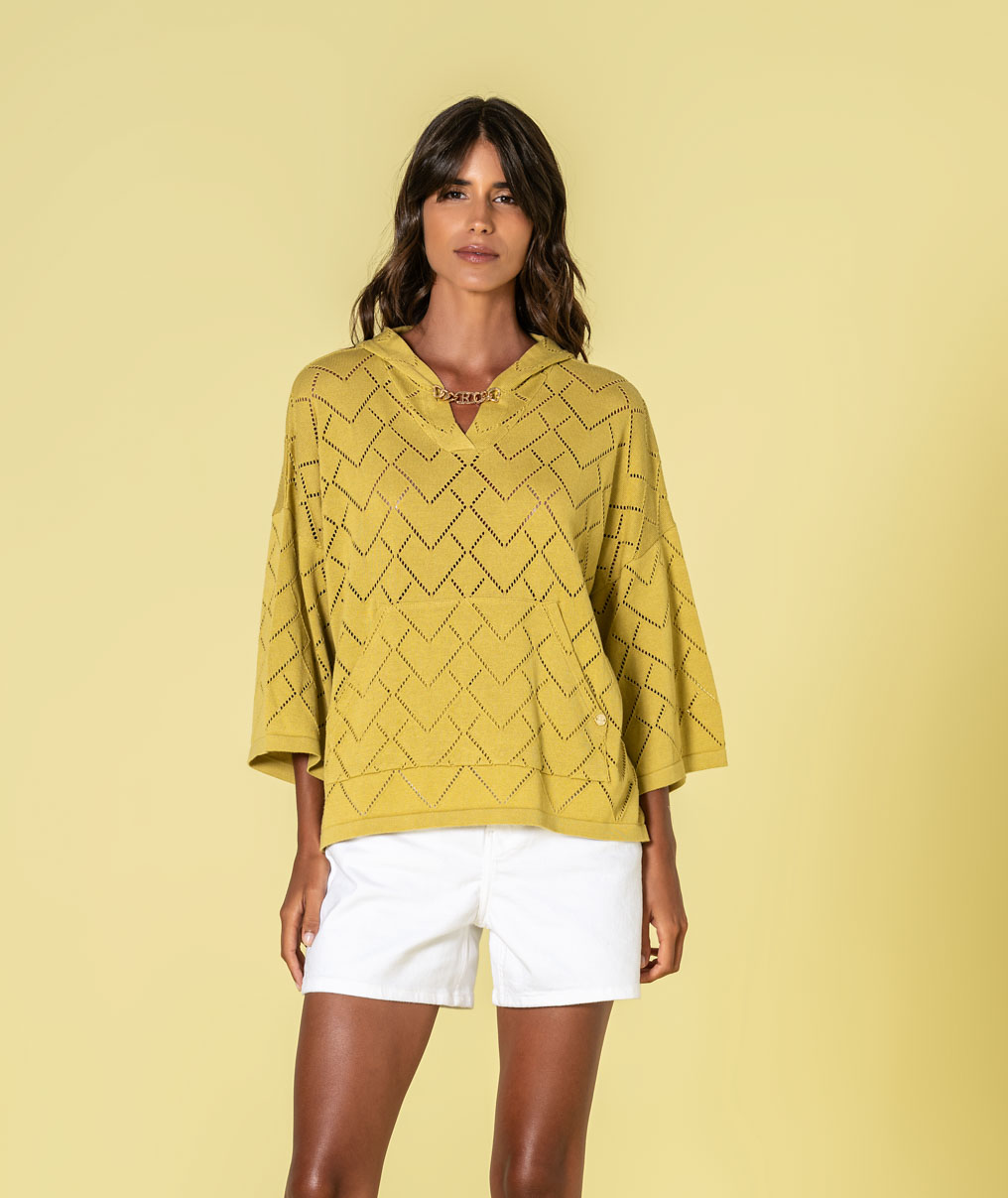 Home Rüga Camisola Cristina -15% Camisola Cristina Cor Pistácio Tamanho S/M M/L 53,13 € 62,50 € Desconto de 15%. Páscoa Desconto imediato de 9,38 € (15%) neste produto. Válido de 1 de Abril de 2026 às 10:00 até 5 de Abril de 2026 às 00:00. Comprar Contactar Adicionar à wishlist Ref. RÜGA.3500 Camisola Rüga em malha com padrão de corações perfurados, bolso na frente, mangas 3/4 soltas e capuz. Decote em V com aplicação. Composição: 50% Algodão 50% Modal Partilhar