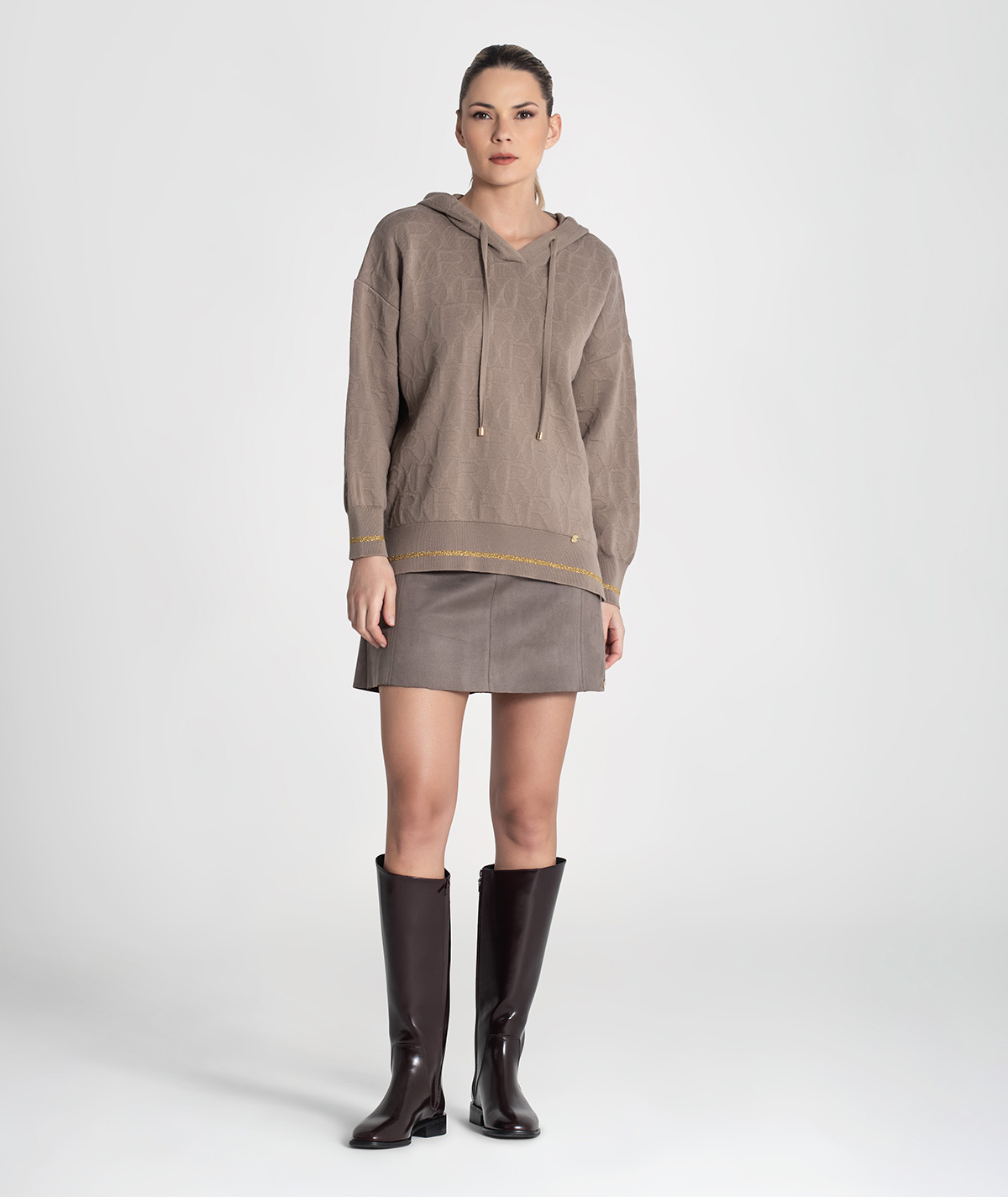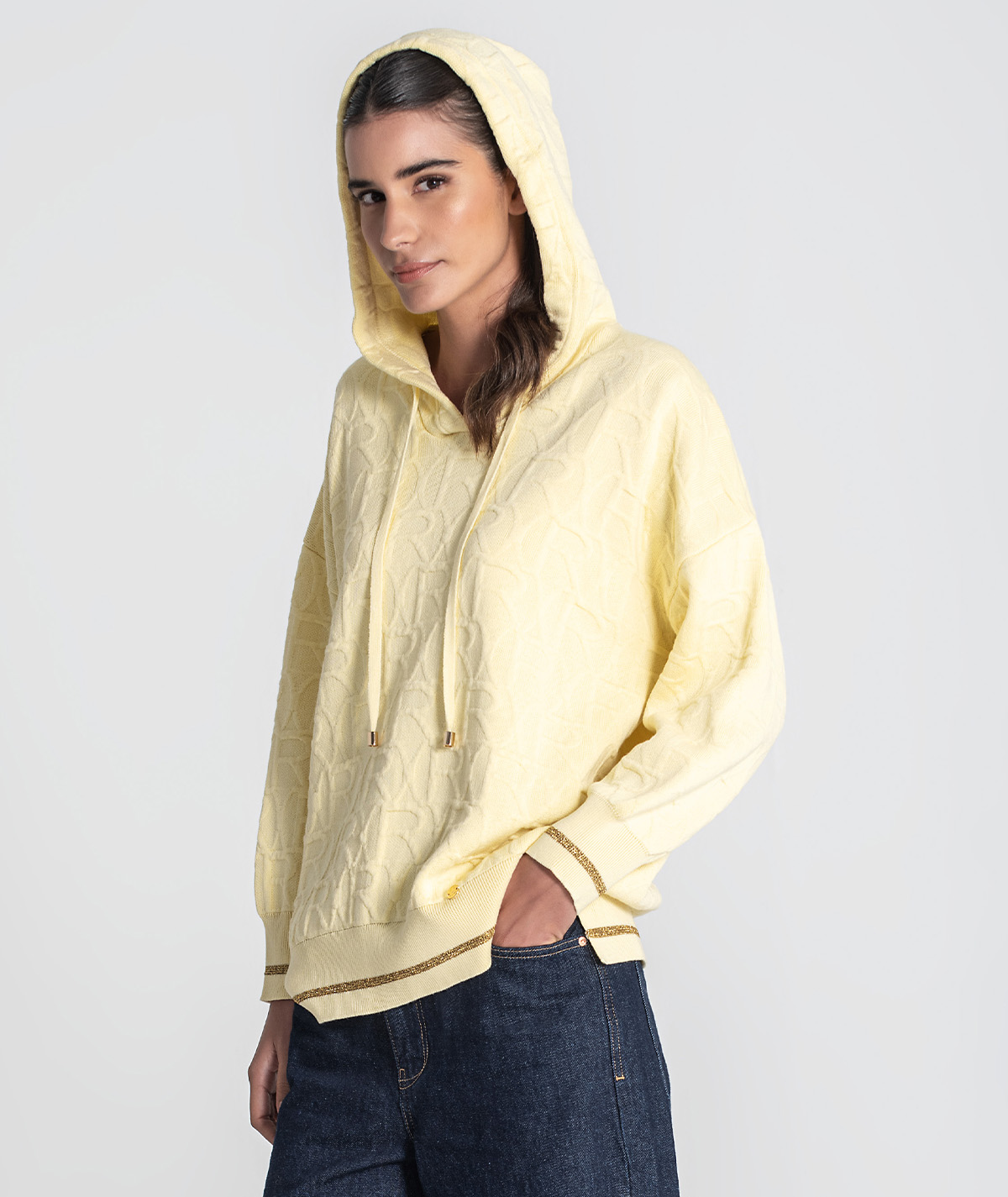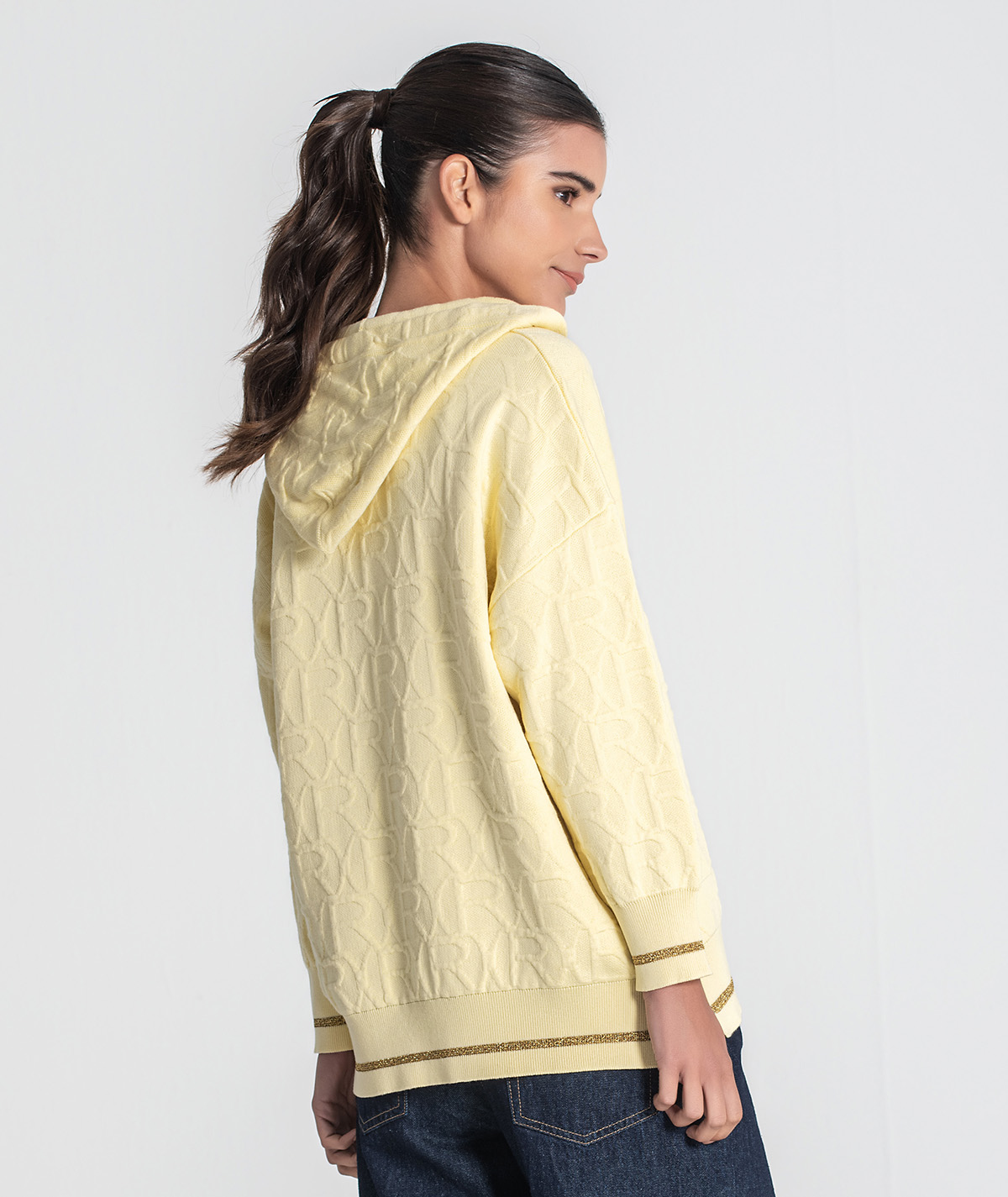 Home Rüga Camisola Maria Camisola Maria Cor Crú Manteiga Taupe Borgonha Tamanho XS/S S/M 84,90 € Desconto de %. Comprar Contactar Adicionar à wishlist Ref. RÜGA.3449 Camisola Rüga em malha com textura "rr" em relevo, detalhes dourados, decote em V e capuz com fita ajustável. Composição: 60% Lyocell 30% Algodão 10% Lurex Partilhar