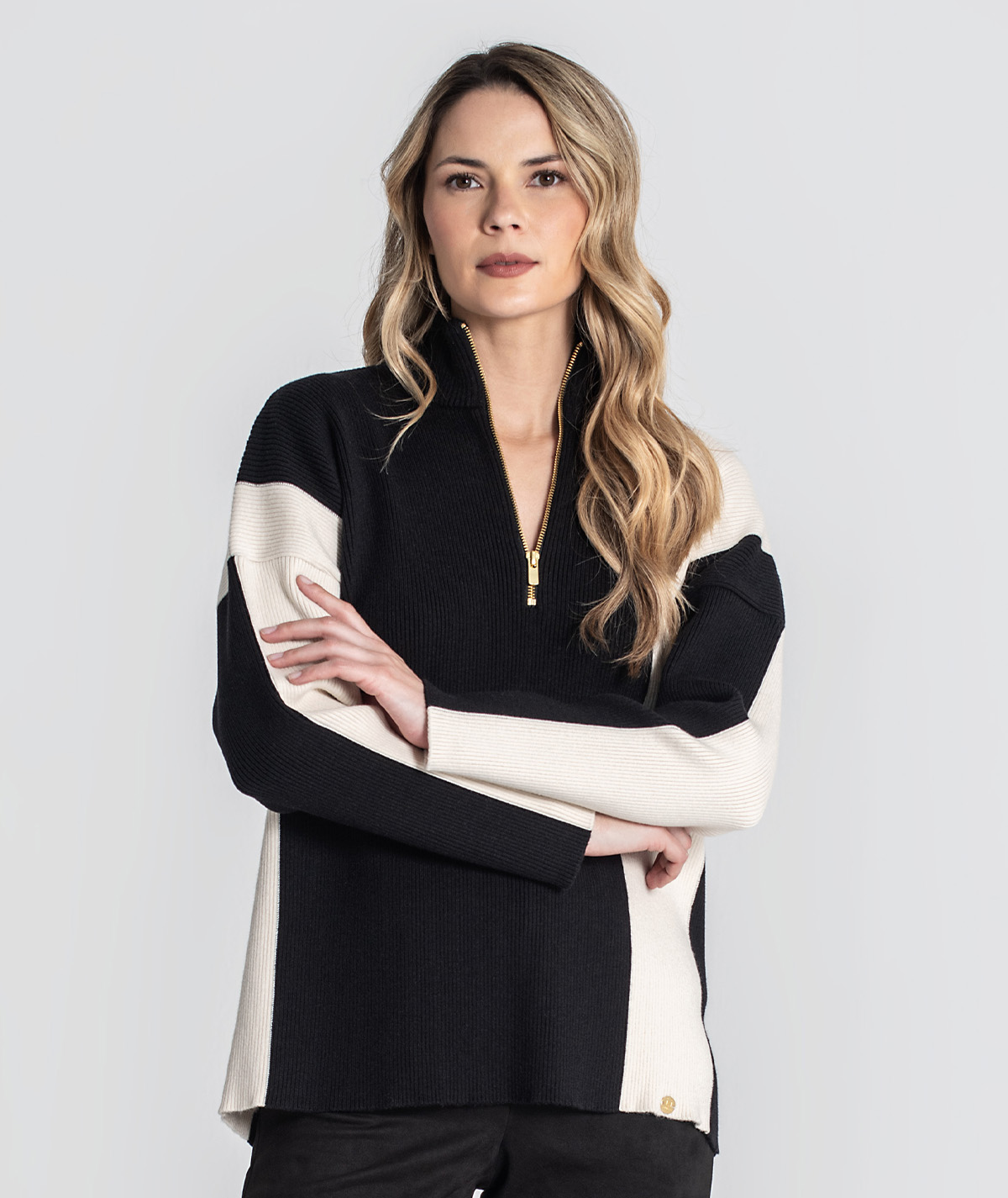 Home Rüga Camisola Paz Camisola Paz Cor Borgonha Castanho Preto Tamanho XS/S S/M M/L 89,90 € Desconto de %. Comprar Contactar Adicionar à wishlist Ref. RÜGA.3466 Camisola Rüga de modelo oversize em malha canelada com cores em contraste, gola alta com fecho zíper e mangas compridas com ombros caídos. Composição: 67% Liocel 33% Algodão Partilhar