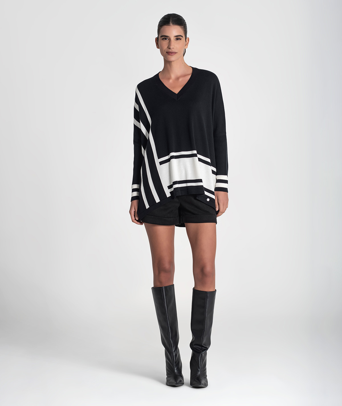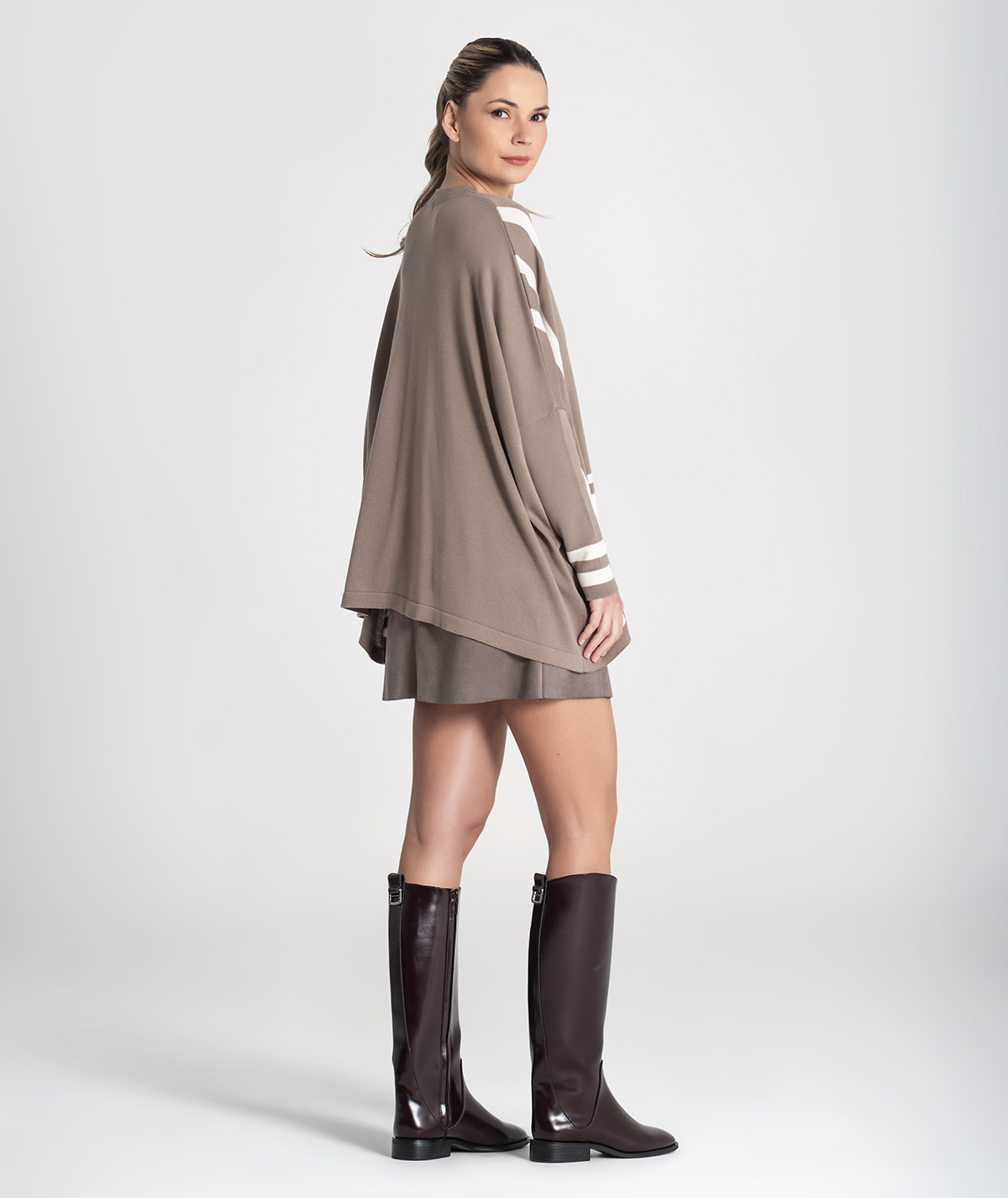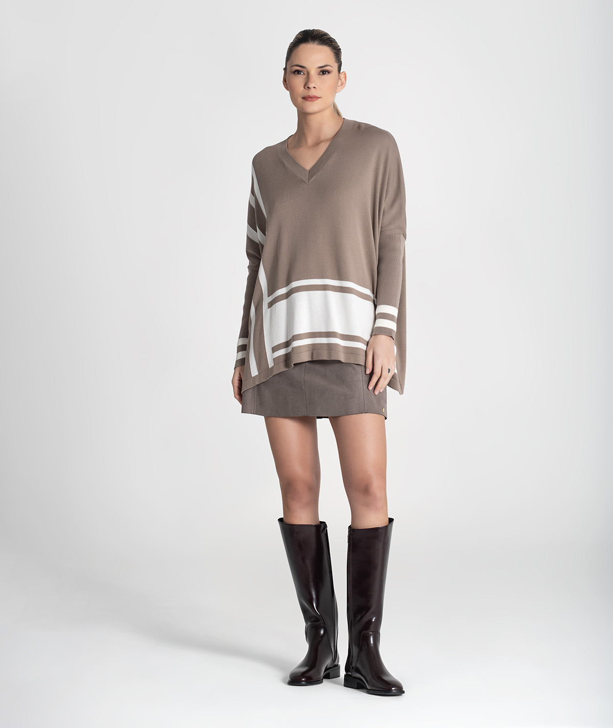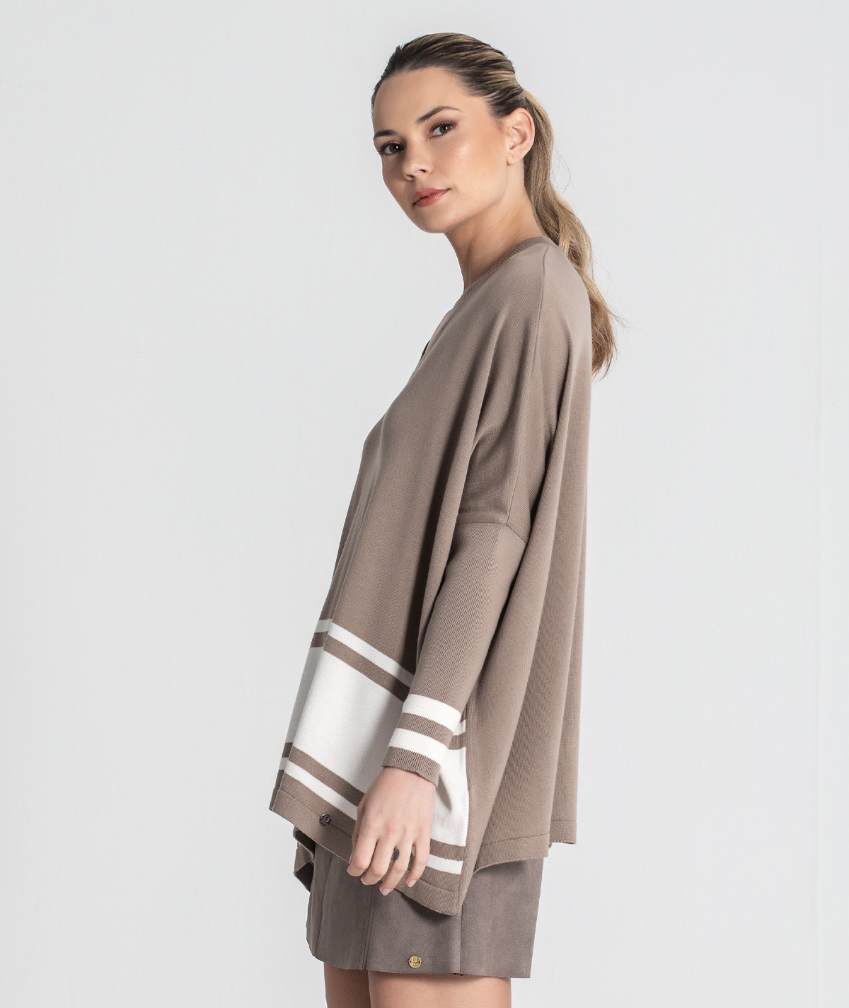 Home Rüga Camisola Rita Camisola Rita Cor Borgonha Castanho Preto Taupe Tamanho XS/S S/M M/L 59,90 € Desconto de %. Comprar Contactar Adicionar à wishlist Ref. RÜGA3473 Camisola Rüga em malha assimétrica de modelo oversize com listras em contraste, decote em V e mangas compridas. Composição: 67% Lyocell 33% Algodão Partilhar