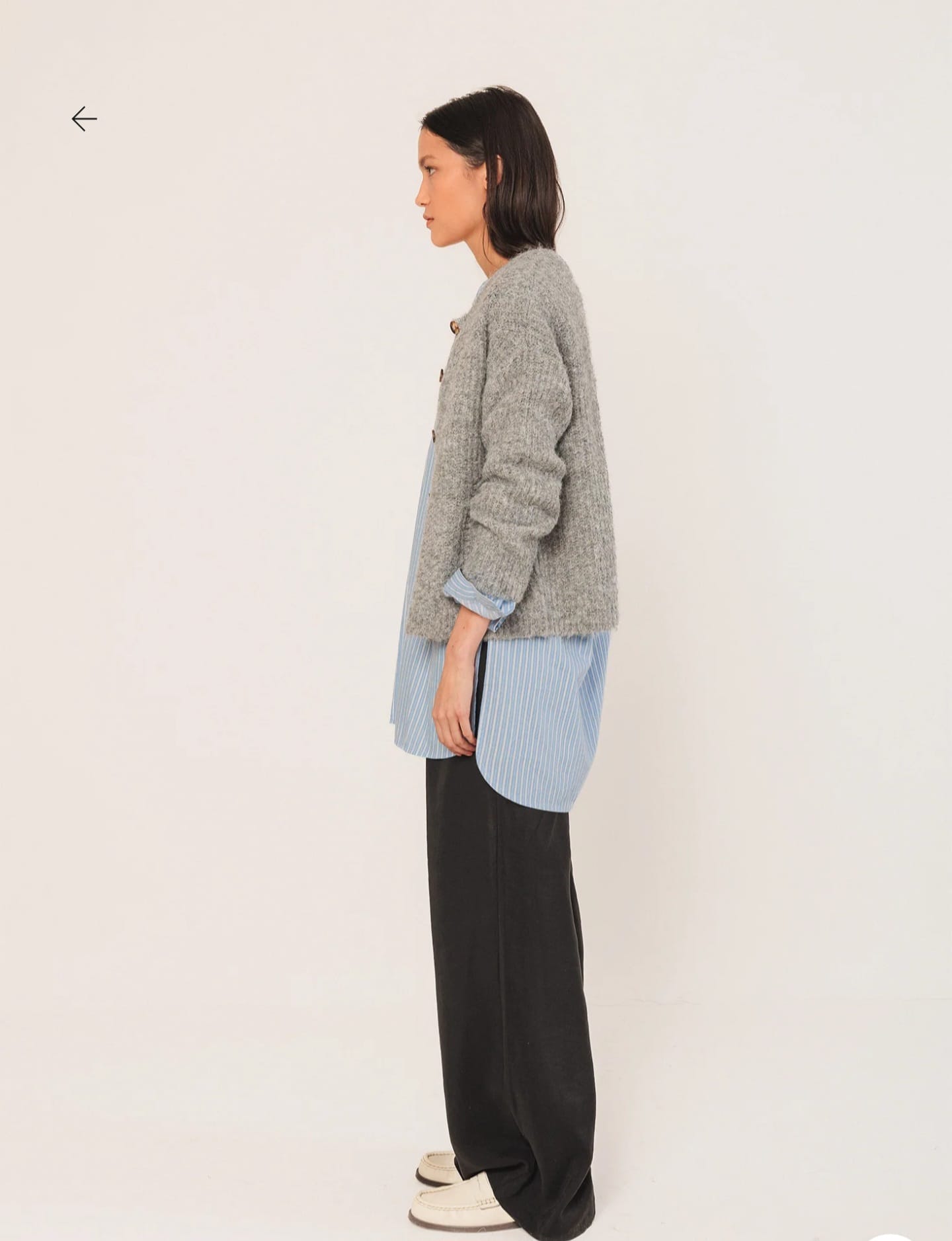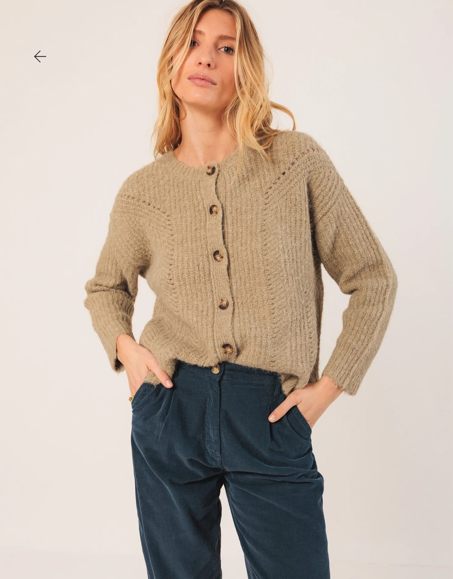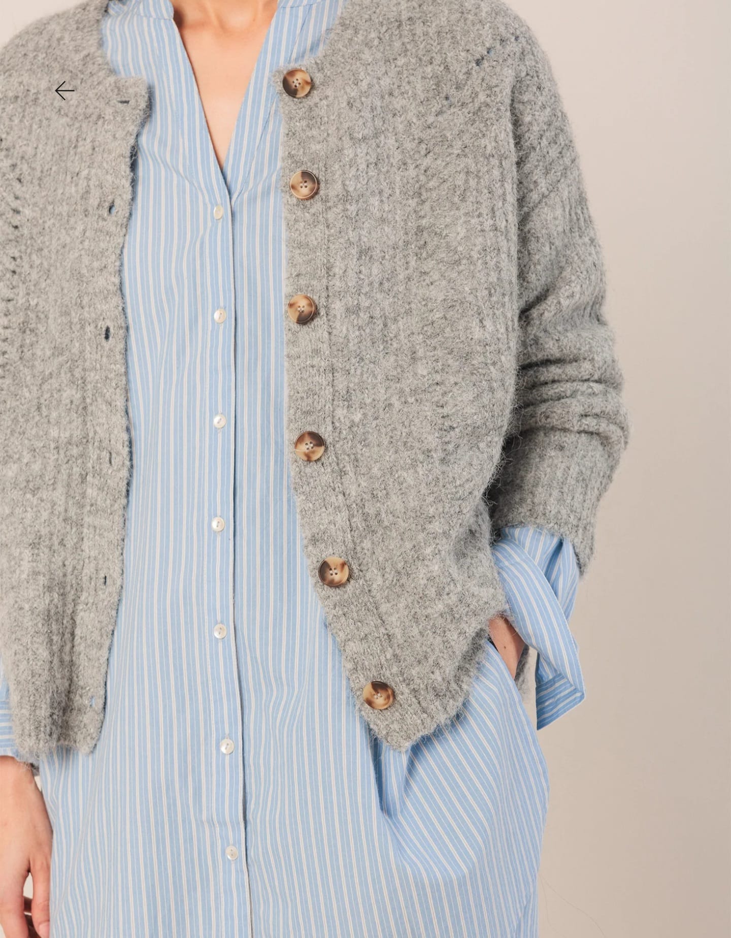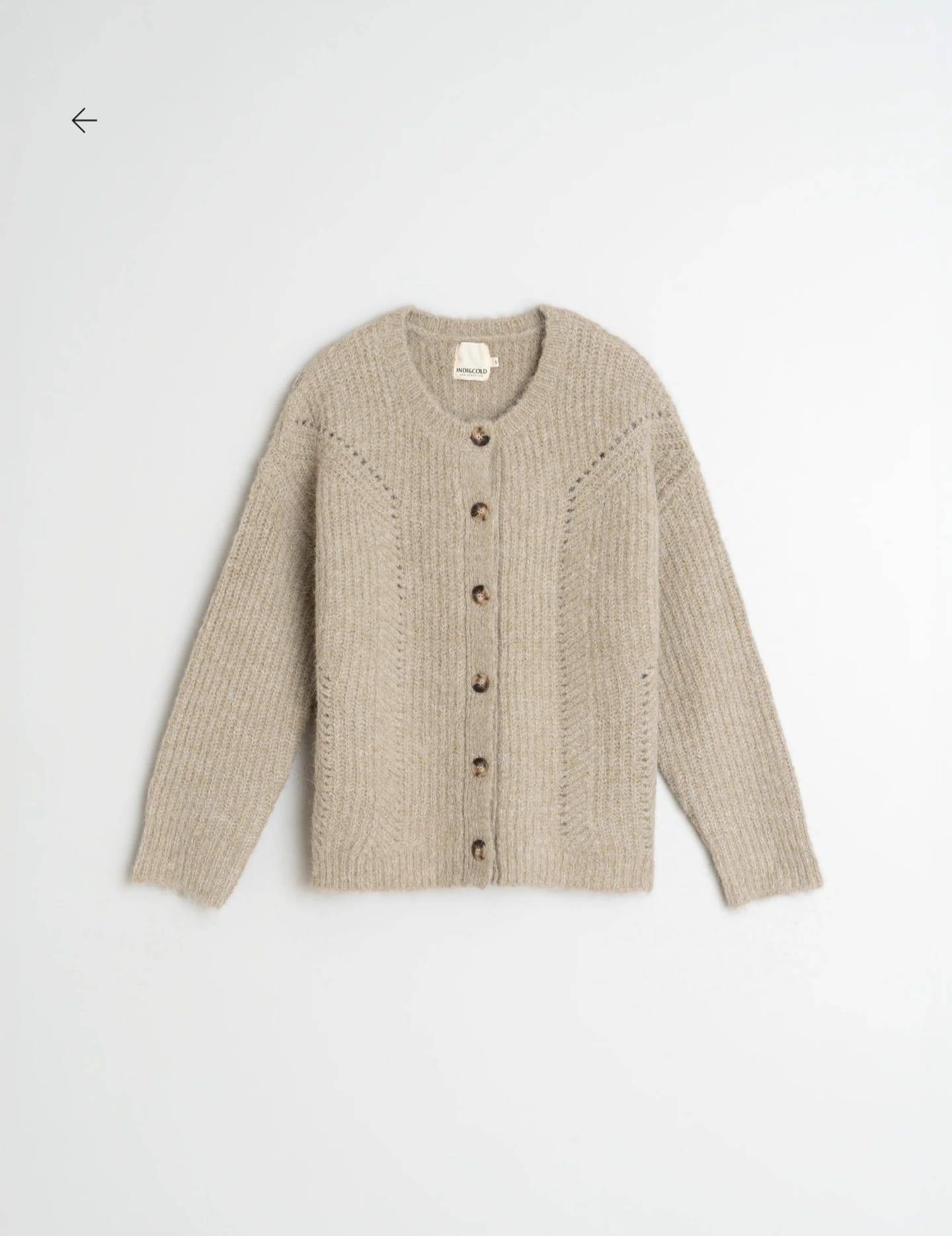 Home Indi & Cold Casaco Bianca Casaco Bianca Cor Cinza Aloe Tamanho XS M 89,90 € Desconto de %. Comprar Contactar Adicionar à wishlist Ref. INDI&COLD.VI25.RD451 Casaco Indi & Cold em malha com detalhes, gola redonda canelada, ombros caídos e mangas compridas. Medidas no tamanho S: Comprimento do ombro: 55 cm. Largura do peito: 53 cm. Largura da parte inferior: 53 cm. Tamanho: +1 cm de comprimento por tamanho e +2 cm nos contornos. Composição: 59% Poliéster reciclado 21% Poliamida 11% Poliéster 8% Lã 1% Elastano Partilhar