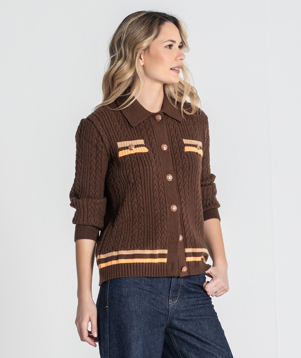 Home Rüga Casaco Francisca Casaco Francisca Cor Castanho Preto Tamanho XS/S S/M 97,50 € Desconto de %. Comprar Contactar Adicionar à wishlist Ref. RÜGA.3458 Casaco Rüga em malha trançada com botões personalizados na frente, gola de camisa e listras nos bolso, bainha e punhos. Composição: 50% Viscose 28% Poliéster 22% Poliamida Partilhar