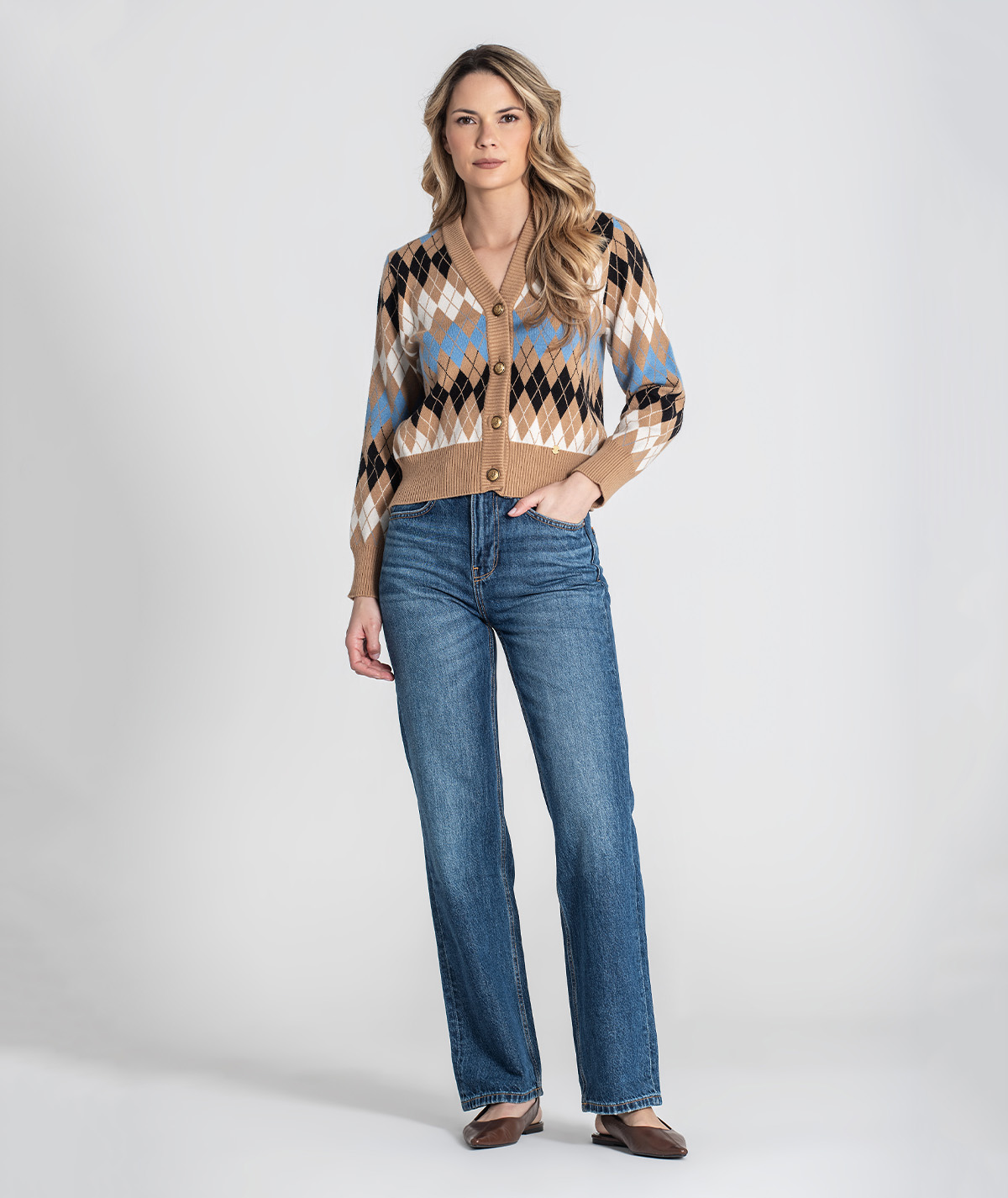 Home Rüga Casaco Losangos Casaco Losangos Cor Antracite Camel Tamanho XS/S S/M M/L 67,50 € Desconto de %. Comprar Contactar Adicionar à wishlist Ref. RÜGA.3446 Cardigan Rüga em malha com jacquard, de modelo curto, decote em V e manga comprida com punho. Composição: 50% Viscose 28% Poliéster 22% Poliamida Partilhar