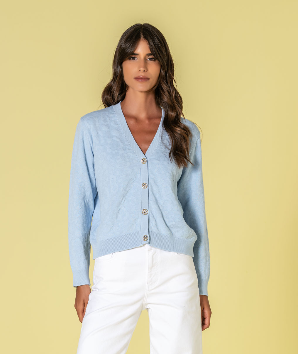 Home Rüga Casaco Natália -15% Casaco Natália Cor Azul Crú Caramelo Tamanho S/M M/L 53,13 € 62,50 € Desconto de 15%. Páscoa Desconto imediato de 9,38 € (15%) neste produto. Válido de 1 de Abril de 2026 às 10:00 até 5 de Abril de 2026 às 00:00. Comprar Contactar Adicionar à wishlist Ref. RÜGA.3509 Casaco Rüga em malha com relevo animal print e botões dourados, decote em V e mangas compridas com punho e cós canelado. Composição: 50%Algodão 50%Modal Partilhar