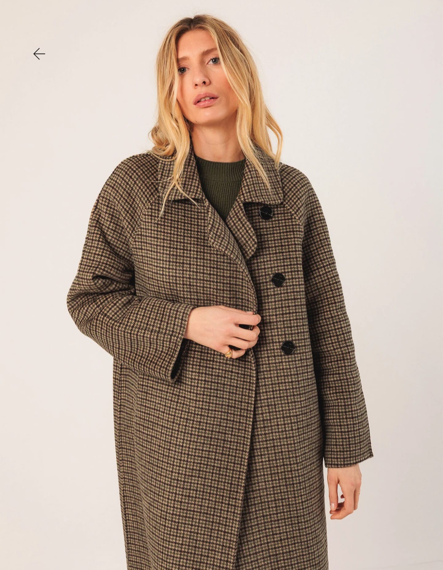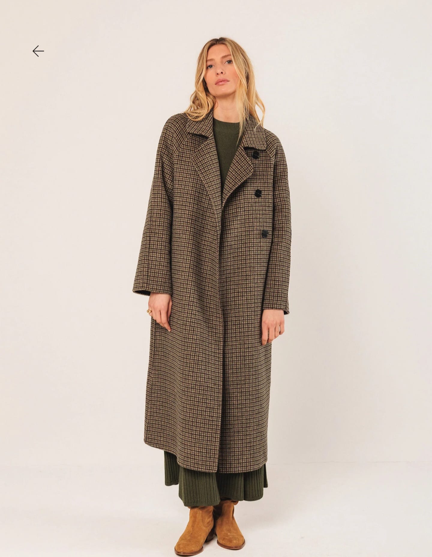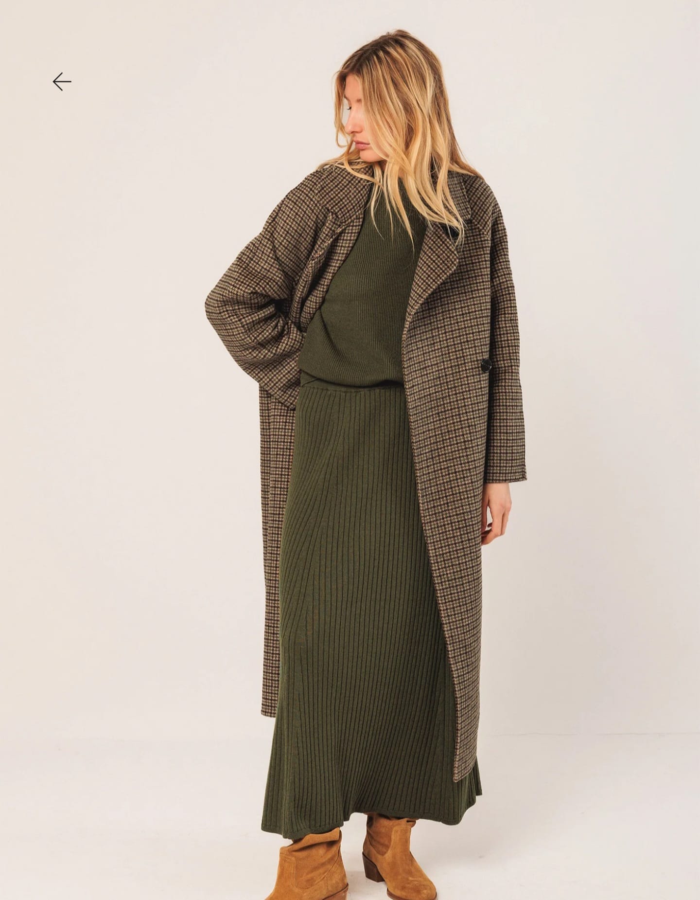 Home Indi & Cold Casaco Sara -40% Casaco Sara Tamanho S M 209,40 € 349,00 € Desconto de 40%. Comprar Contactar Adicionar à wishlist Ref. INDI&COLD.VI25.BY600 Casaco Indi & Cold em lã, de modelo solto com padrão xadrez, fecho frontal com botões e bolsos embutidos e mangas 3/4. Medidas no tamanho S: Comprimento do ombro: 120 cm. Largura do peito: 55 cm. Largura da parte inferior: 64 cm. Tamanho: +1 cm de comprimento por tamanho e +2 cm nos contornos. Composição: 70% Lã 30% Outras fibras Partilhar