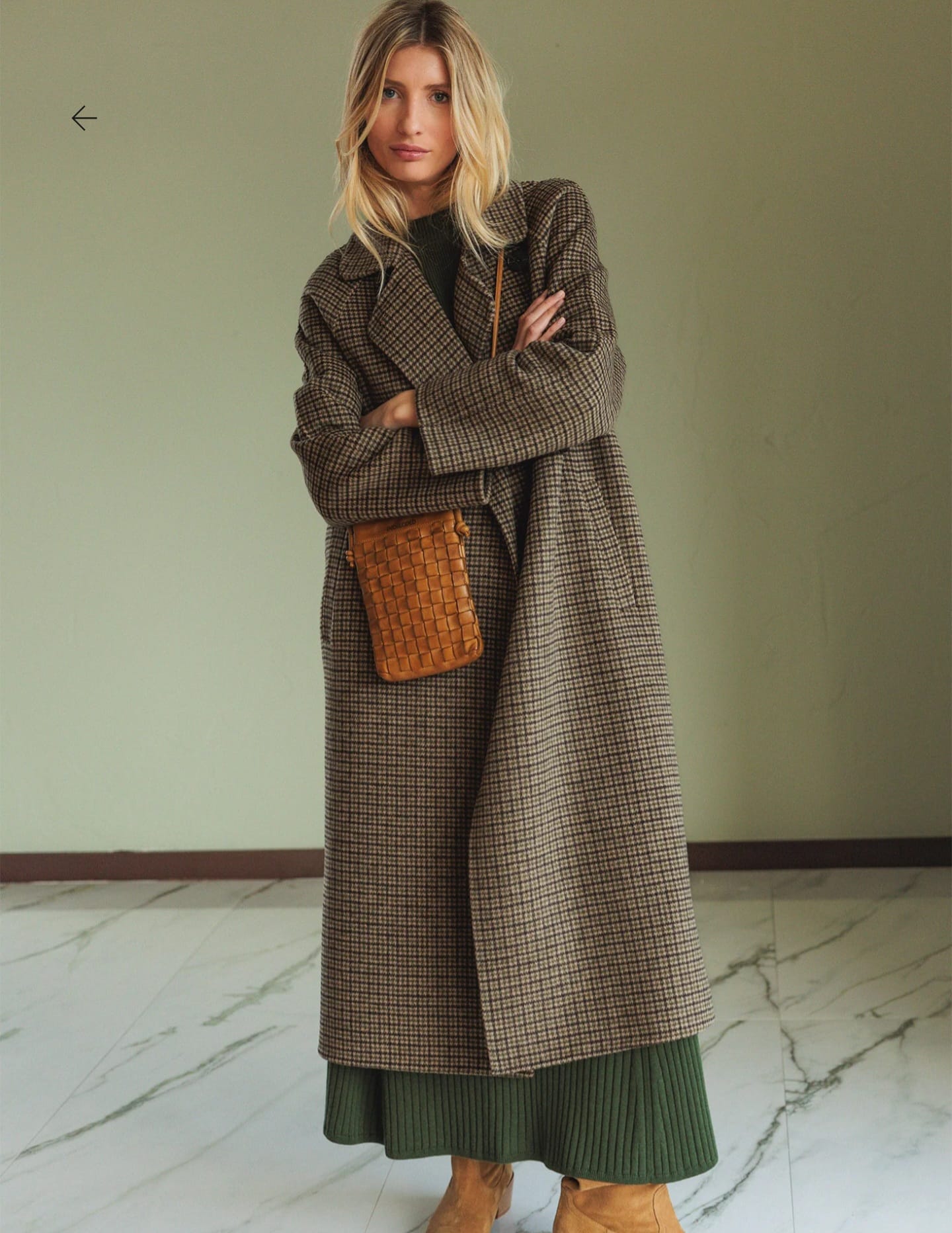 Home Indi & Cold Casaco Sara Casaco Sara Tamanho S M 349,00 € Desconto de %. Comprar Contactar Adicionar à wishlist Ref. INDI&COLD.VI25.BY600 Casaco Indi & Cold em lã, de modelo solto com padrão xadrez, fecho frontal com botões e bolsos embutidos e mangas 3/4. Medidas no tamanho S: Comprimento do ombro: 120 cm. Largura do peito: 55 cm. Largura da parte inferior: 64 cm. Tamanho: +1 cm de comprimento por tamanho e +2 cm nos contornos. Composição: 70% Lã 30% Outras fibras Partilhar