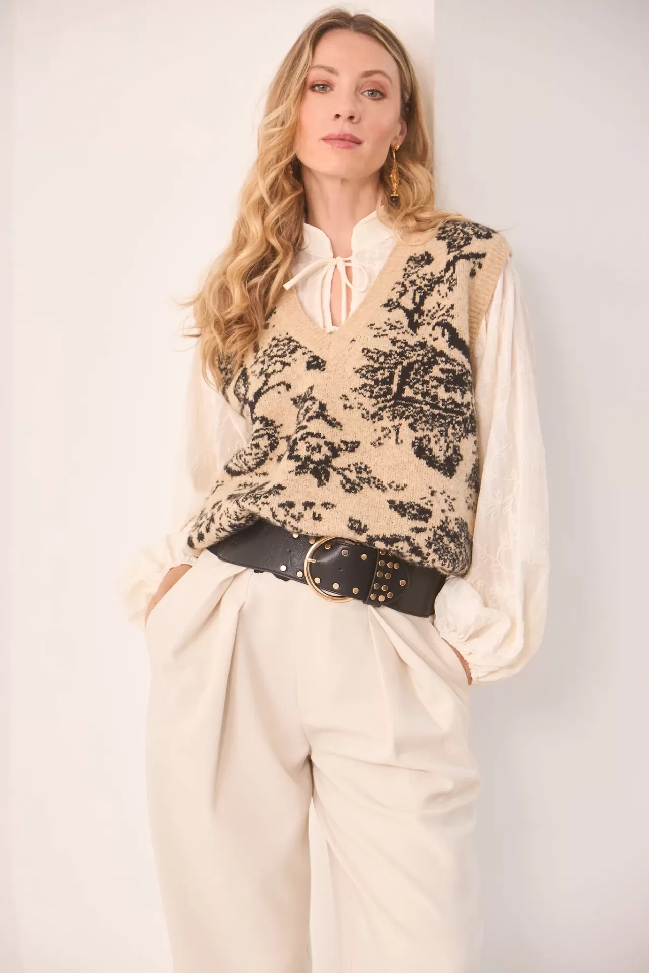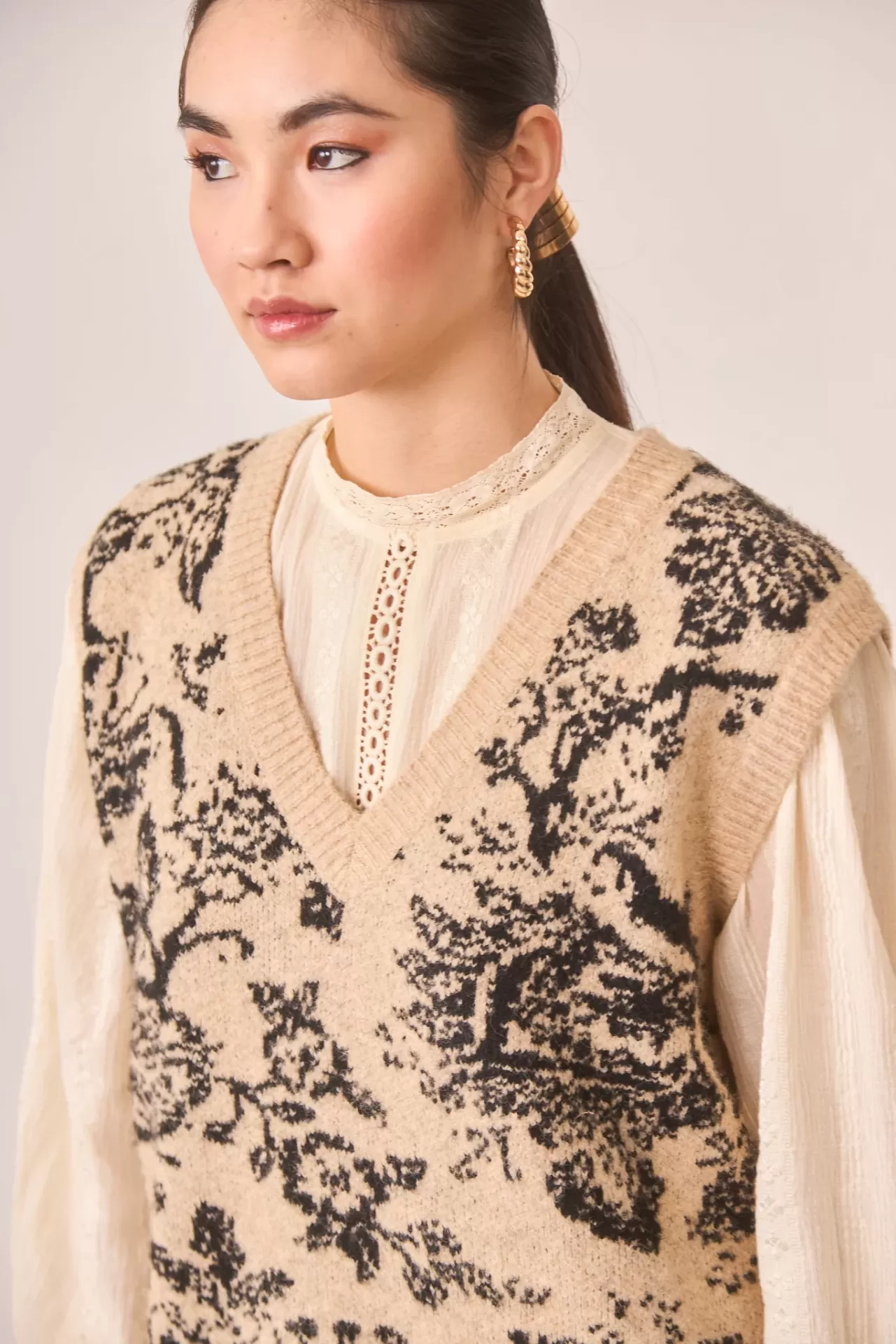 Home Nekane Colete Blosom -20% Colete Blosom Tamanho S/M M/L 52,00 € 65,00 € Desconto de 20%. Pink Week Desconto imediato de 13,00 € (20%) neste produto. Válido de 22 de Novembro de 2025 às 21:00 até 29 de Novembro de 2025 às 00:00. Comprar Contactar Adicionar à wishlist Ref. NEKANE.TS.BLOSOM Colete Nekane em malha jacquard com motivos florais contrastantes e decote em V. Composição: 53% Poliéster reciclado 39% Poliéster 5% Lã 3% Elastano Partilhar