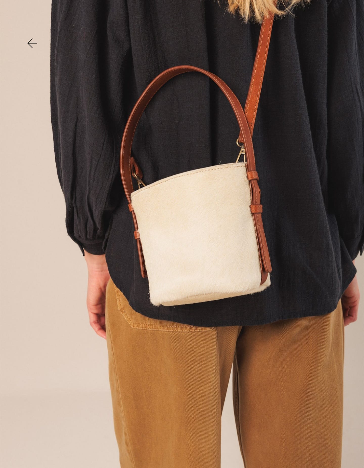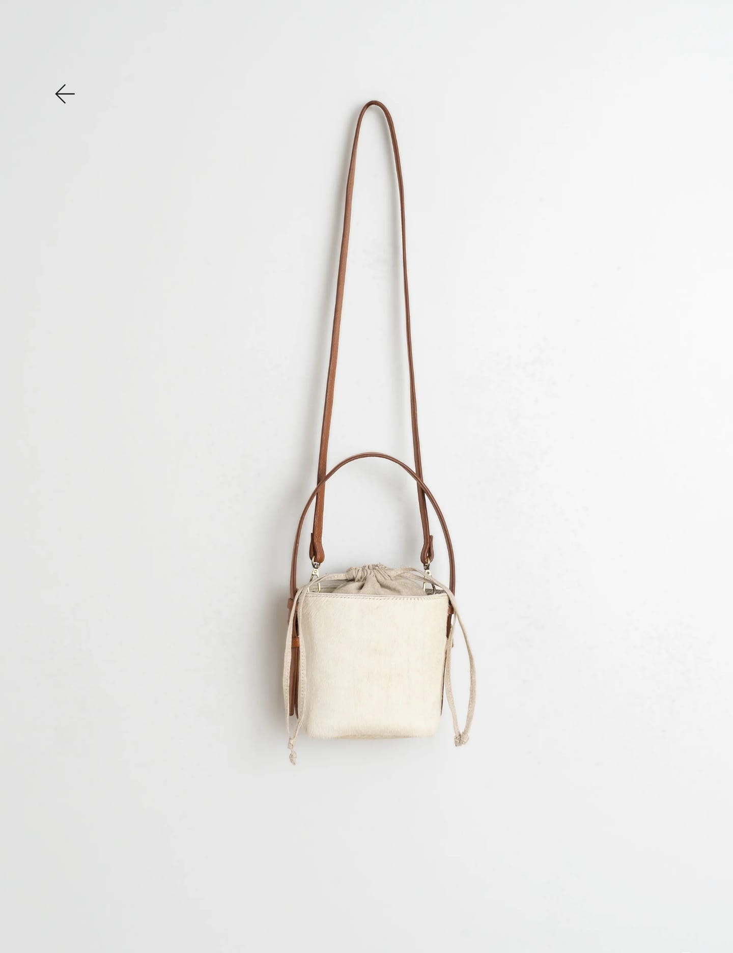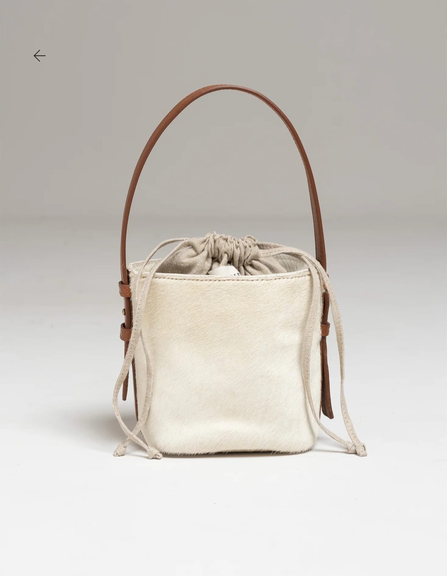 Mala Indi & Cold em couro, com interior em algodão e linho com fecho de cadarço ajustável e duas alças, uma curta em couro e outra comprida com fecho mosquetão