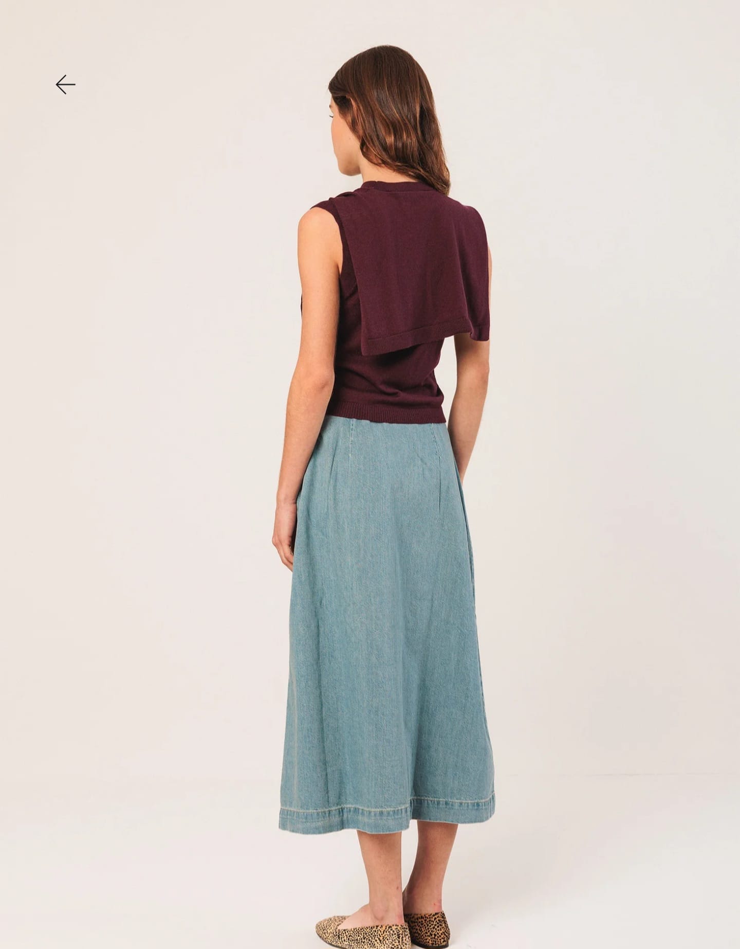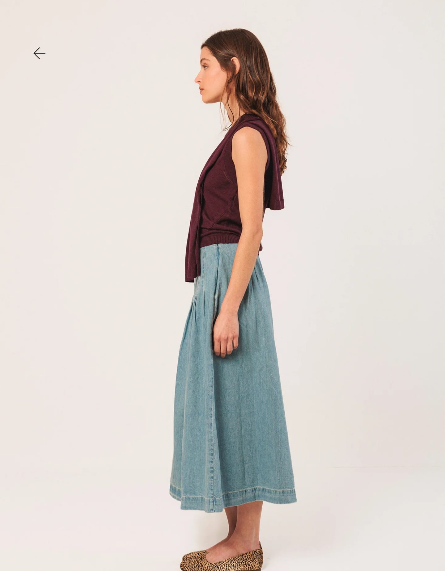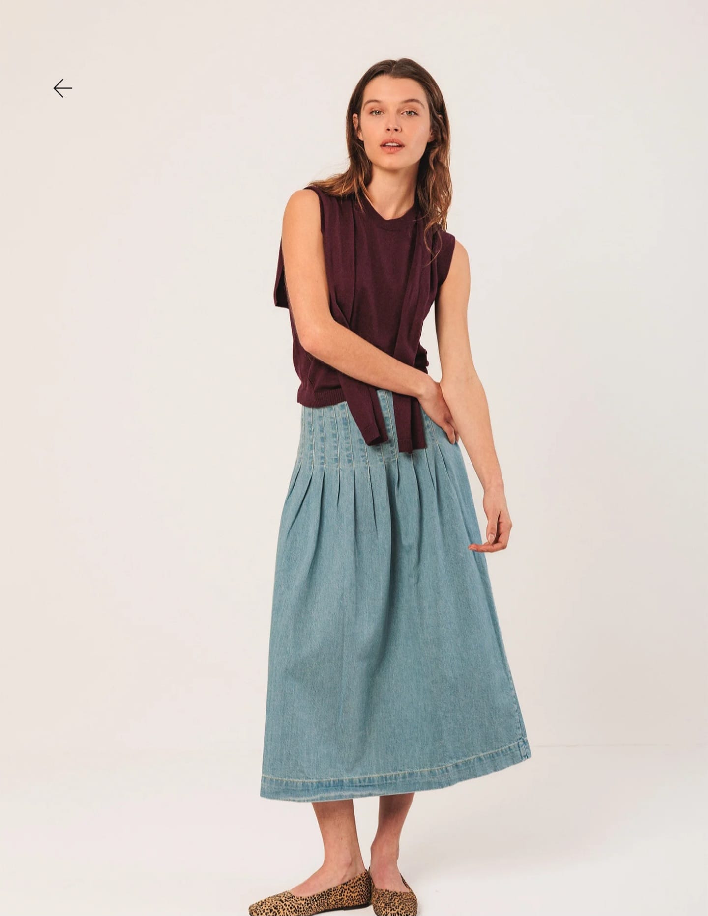 Home Indi & Cold Saia Jeans -50% Saia Jeans Tamanho S L 64,50 € 129,00 € Desconto de 50%. Comprar Contactar Adicionar à wishlist INDI. Válido de 20 de Janeiro de 2026 às 00:00 até 28 de Fevereiro de 2026 às 00:00. Ref. INDI&COLD.VI25.DD253 Saia Indi & Cold em tecido ganga de algodão, cós médio, plissado, com fecho de zíper lateral oculto e bolsos laterais ocultos. Ajuste relaxado. Medidas no tamanho 36, cintura plana: 36 cm. Comprimento total da peça: 80 cm. Tamanho: cada peça aumenta em comprimento em 1 cm por tamanho. Composição: 100% Algodão Partilhar