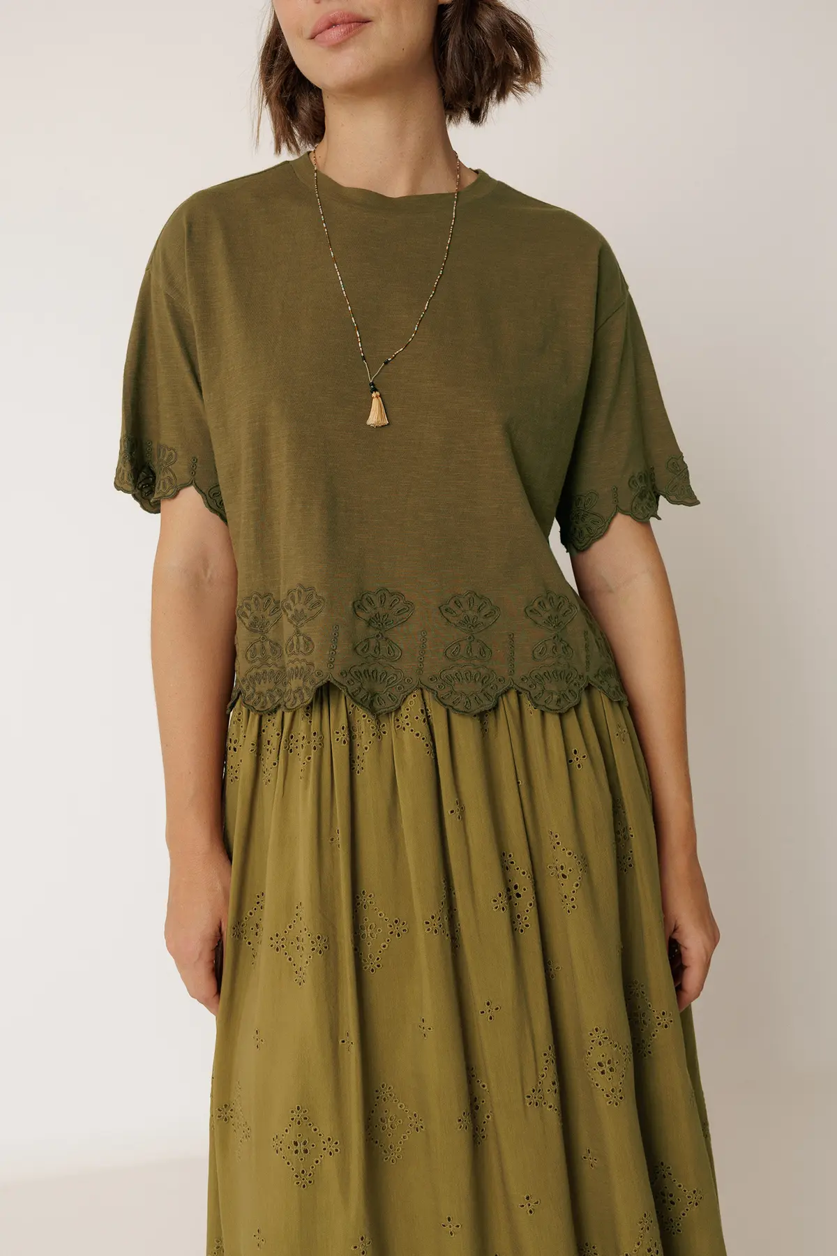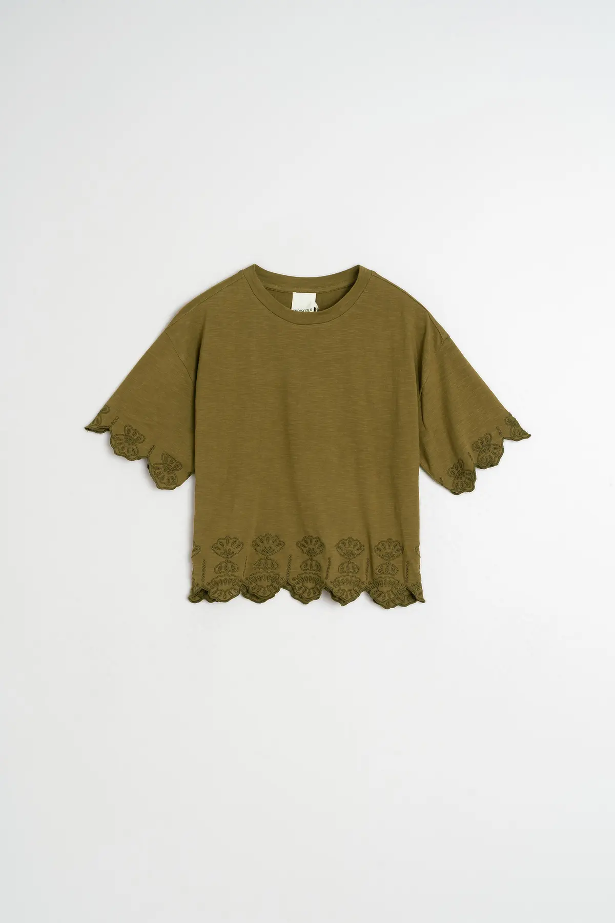 Home Indi & Cold T-shirt Paola T-shirt Paola Cor Caqui Crú Tamanho XS S M L XL 69,90 € Desconto de %. Comprar Contactar Adicionar à wishlist Ref. INDI&COLD.VV26.SK430 T-shirt Indi&Cold de corte reto e curto em tecido de algodão com detalhes bordados e acabamento em renda, ombros caídos e mangas curtas. Medidas da peça tamanho S (medida com a peça estendida): Comprimento a partir do ombro: 53 cm. Largura do busto: 52 cm. Largura da barra: 52 cm. Ajuste de tamanho: +1 cm no comprimento por tamanho e +2 cm nas medidas de contorno. Composição: 100% Algodão sustentável Partilhar