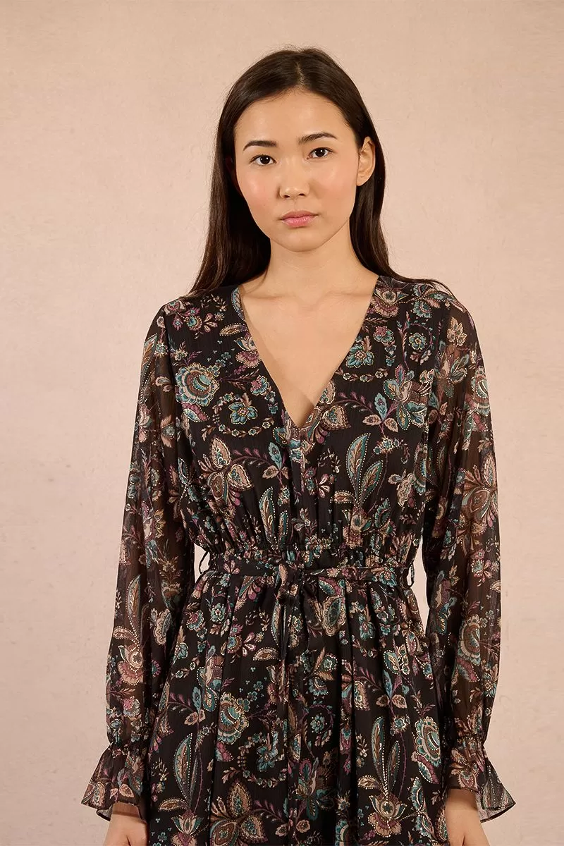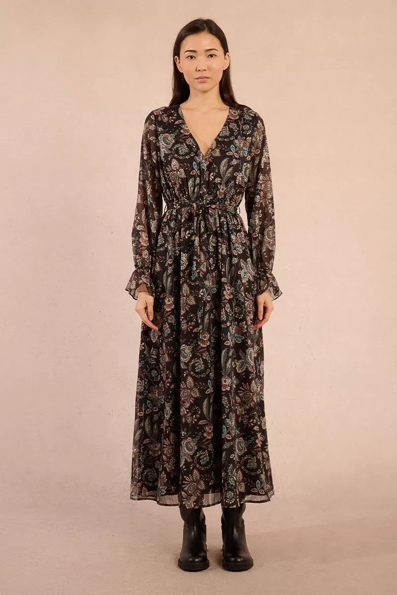 Home Vestidos Vestido Amália Vestido Amália Tamanho S M L XL 89,50 € Desconto de %. Comprar Contactar Adicionar à wishlist Ref. MOLLYBRACKEN.G903DN Vestido Molly Bracken comprido estampado, decote em V, cintura marcada e elástica e mangas compridas com punho elástico. Vestido parcialmente forrado. Composição: 100% Poliéster Partilhar