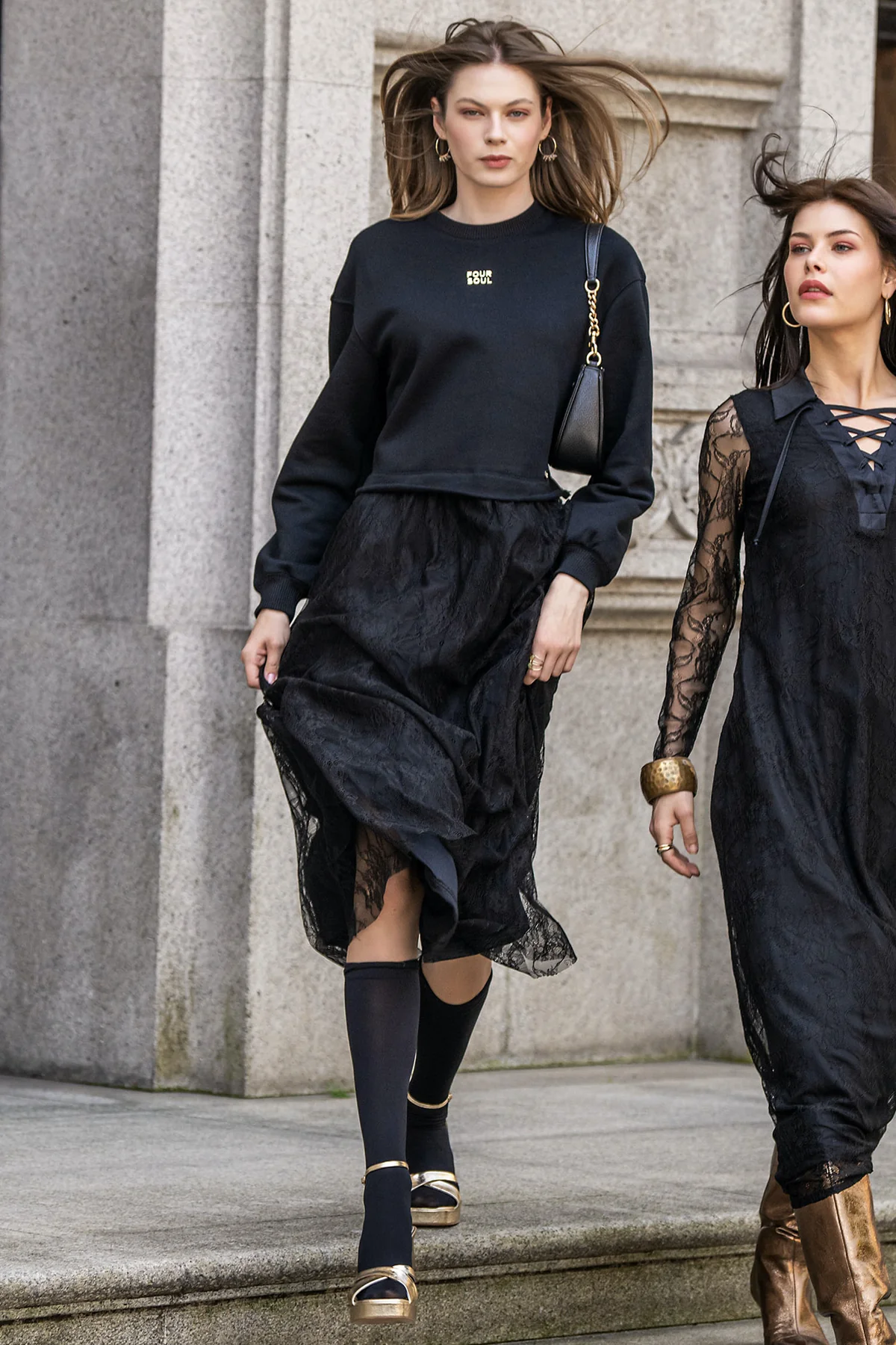 Home Foursoul Vestido Maria Vestido Maria Cor Preto Bordeaux Tamanho S M L XL 119,95 € Desconto de %. Comprar Contactar Adicionar à wishlist Ref. FOURSOUL.FS25410400 Vestido Foursoul midi, parte de cima estilo sweat de decote redondo, ombros caídos e mangas compridas com punhos, saia fluída em renda com forro. Partilhar