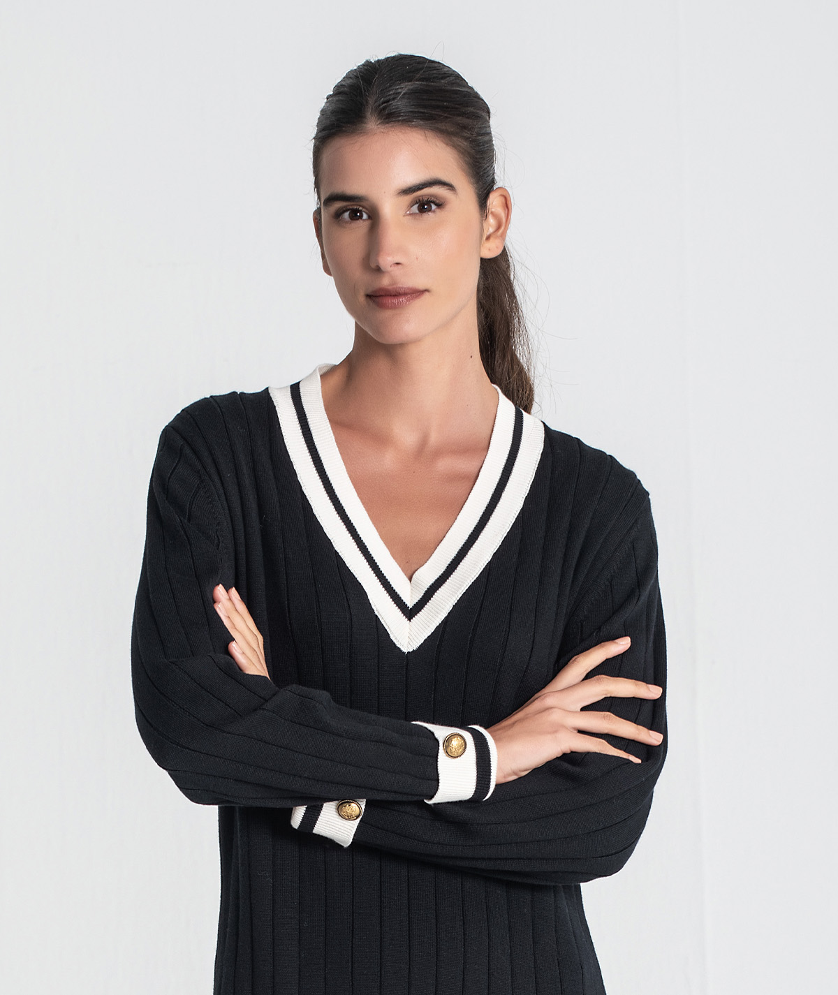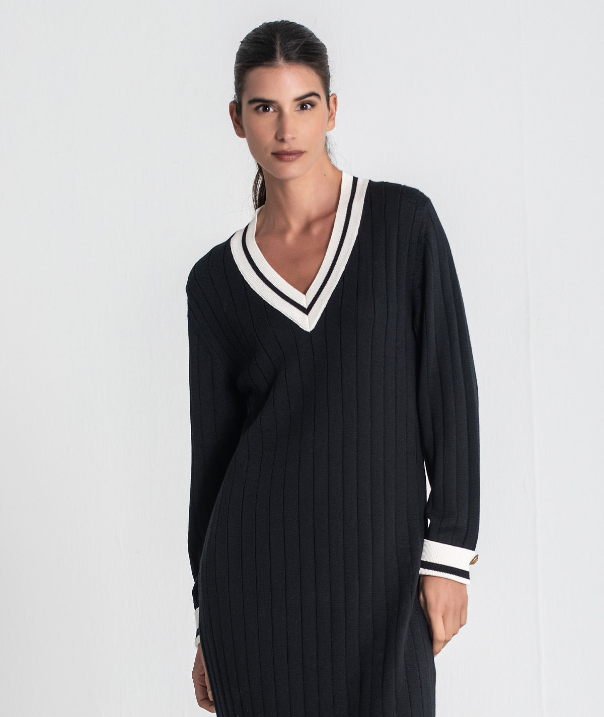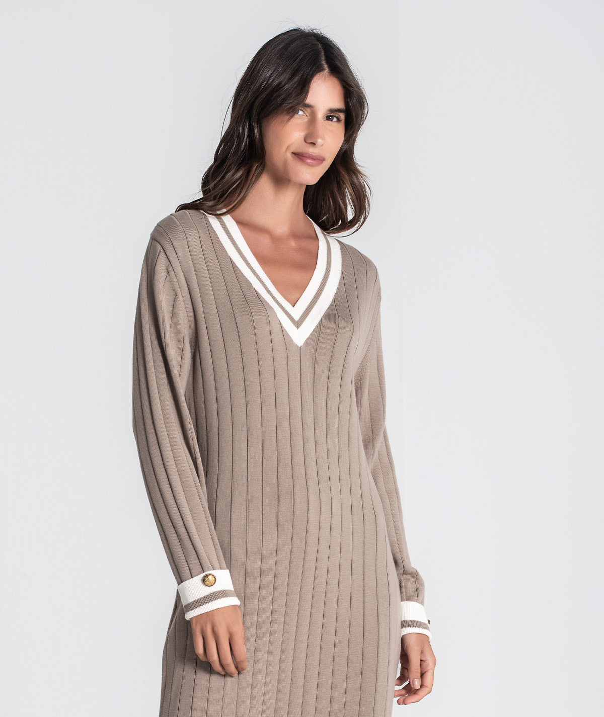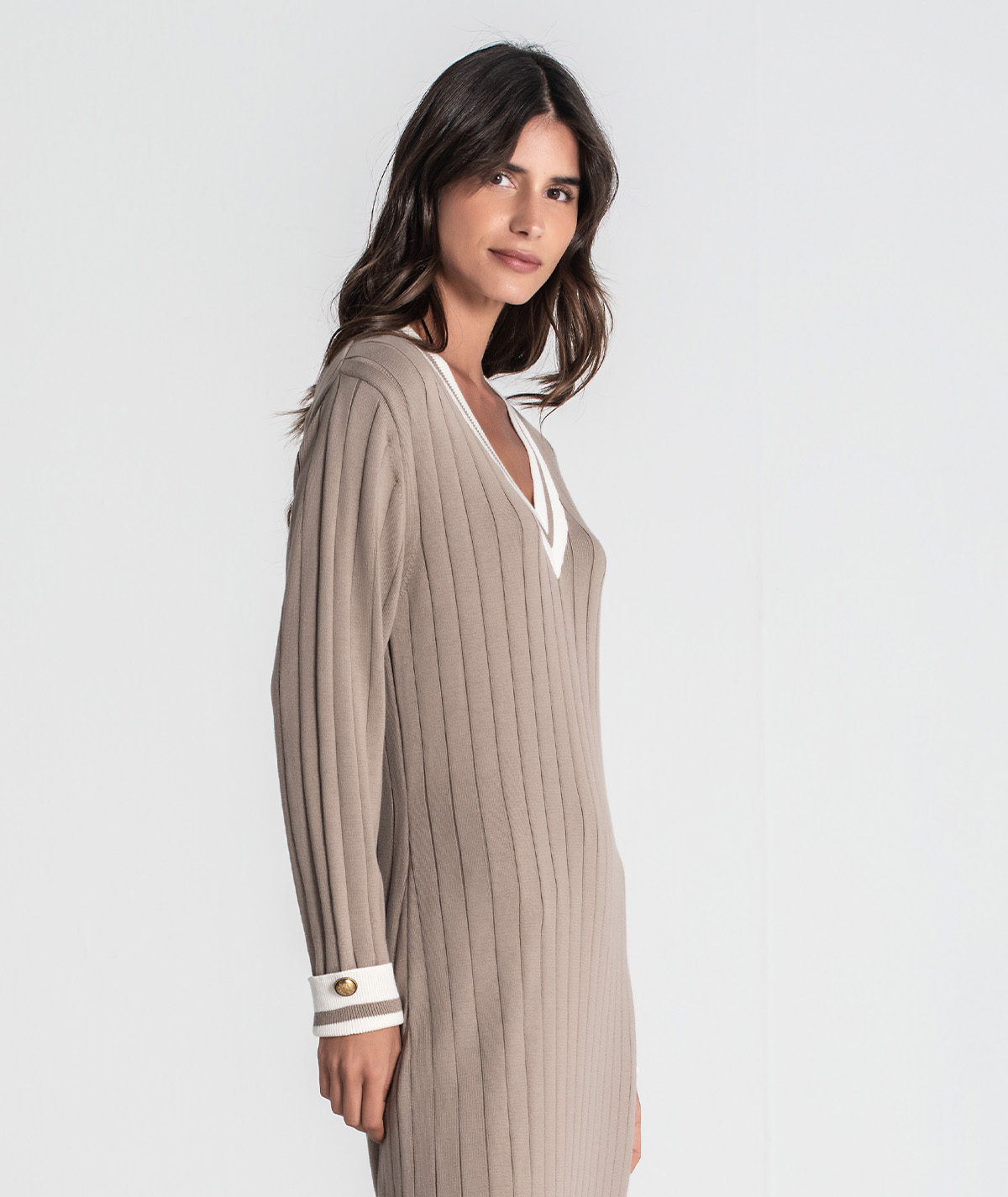 Home Rüga Vestido Sofia Vestido Sofia Cor Borgonha Preto Taupe Marinho Tamanho XS/S S/M 82,50 € Desconto de %. Comprar Contactar Adicionar à wishlist Ref. RÜGA.3472 Vestido Rüga comprido em malha canelada com listras contrastantes no decote, punhos e bainha, decote em V e manga comprida com punho e botão. Composição: 67% Lyocell 33% Algodão Partilhar